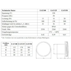 Abluftventilator Ø 125mm Mit Lichtschalter-Aktivierung Bad Lüfter Ventilator