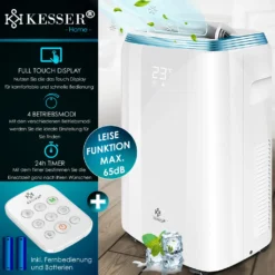KESSER Turmventilator FERNBEDIENUNG Ventilator LED Display Standventilator Klimaanlage, Farbe:Weiß