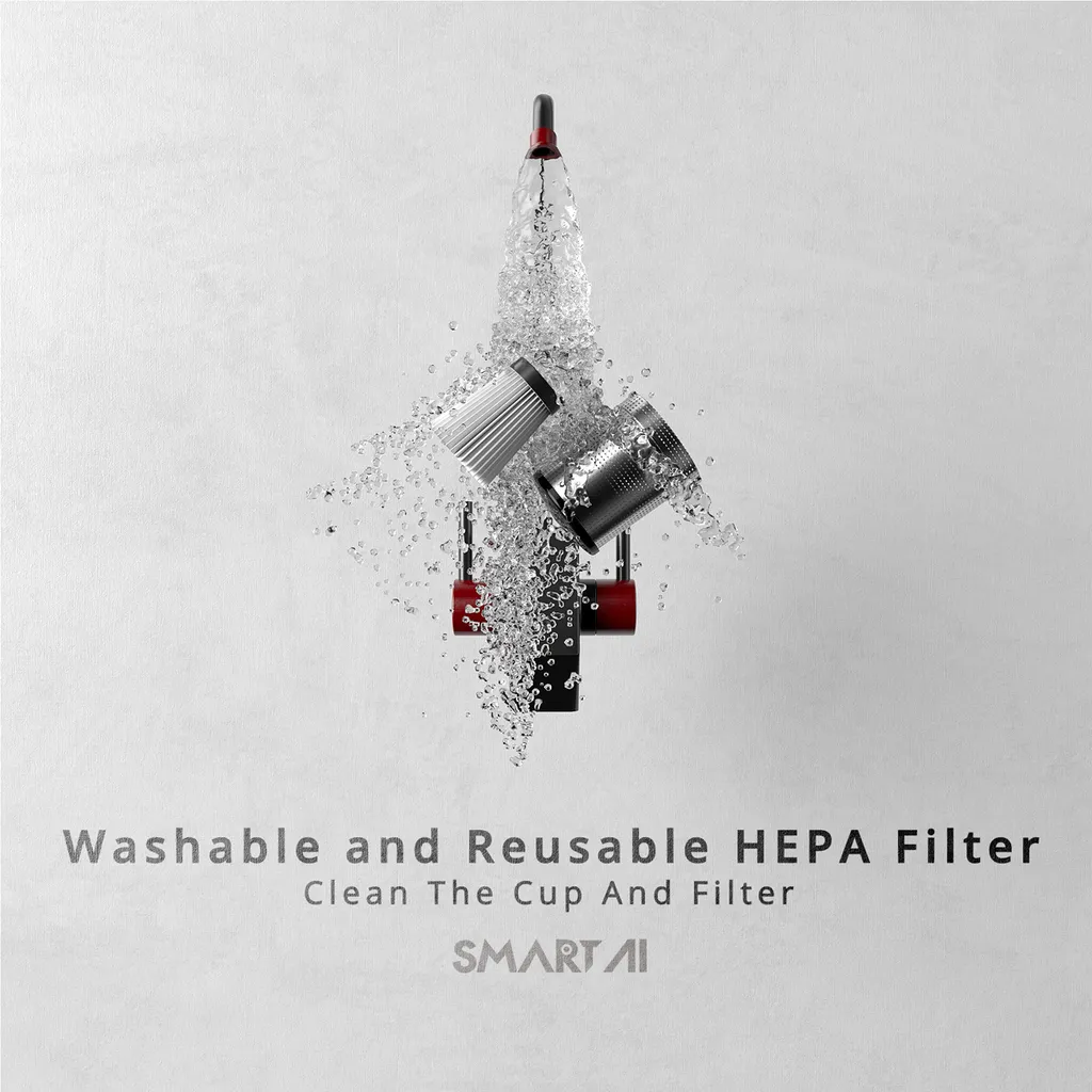 120 W Leistung / 15 KPa Saugkraft: Der Staubsauger hat eine Leistung von 120 W und ist mit einem bürstenlosen Hochgeschwindigkeitsmotor mit 110.000 Umdrehungen pro Minute ausgestattet, so dass die maximale Saugkraft 15 kpa erreichen kann, und die minimale Saugkraft beträgt 9 kpa. Die maximale Saugkraft kann 30 Minuten lang genutzt werden, die minimale 15 Minuten. Der Geräuschpegel beträgt weniger als 65 dB und ist niedriger als bei anderen Staubsaugern auf dem Markt. Die starke Saugkraft ermöglicht es Ihnen, die meisten Verschmutzungen des täglichen Lebens aufzusaugen, einschließlich Tierhaare, Kartoffelpommes, Haferflocken, Sand, Kaffeebohnen, usw.