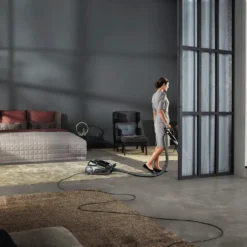 Mit unserem VX9 möchten wir Ihnen das Staubsaugen so einfach und angenehm wie möglich machen. Der Komfort-Tragegriff liegt nicht nur angenehm in der Hand, er dient auch als Stoßleiste und schützt Türen und Möbel. Der VX9 verfügt über eine ausgezeichnete Manövrierbarkeit mit einem komfortablen Aktionsradius von 12 Meter.