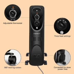 Der Heizkörper lässt sich mit vier 360-Grad-Lenkrollen leicht bewegen. Tragegriff und Aufwickelvorrichtung für zusätzliche Mobilität.