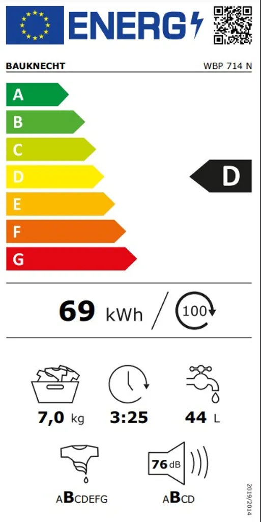 – Gewichteter Energieverbrauch pro 100 Betriebszyklen: 69 kWh
