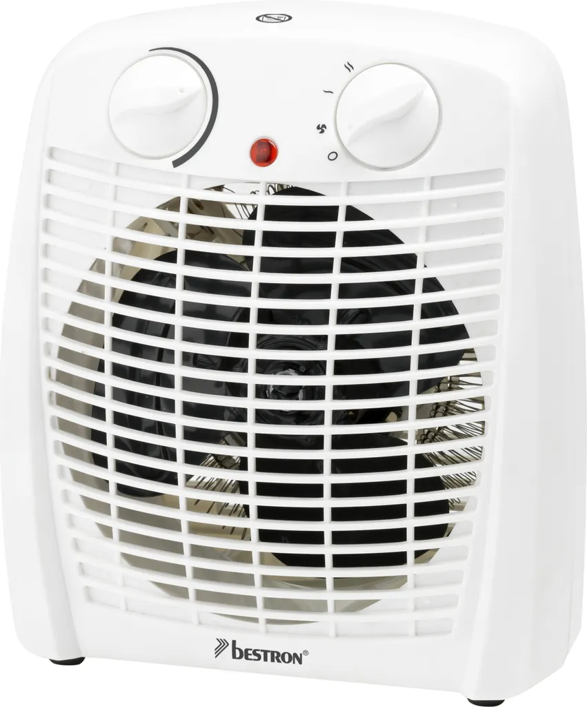 - Lieferumfang: 1 Bestron Heizlüfter, Leistung: 2000W, Maße: 19x22x13 cm, Verbrauch: 1,8-2kw, Kabellänge 1,12 m, Gewicht: 0,88 kg, Material: Kunststoff/Kupfer/Gummi/Aluminium/Metall, Farbe: Weiß, AFH211W