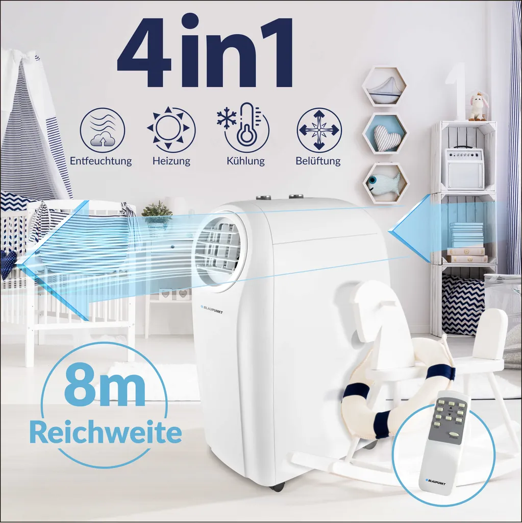 - Funktionen: Kühlung, Heizen, Lüftung und Entfeuchtung