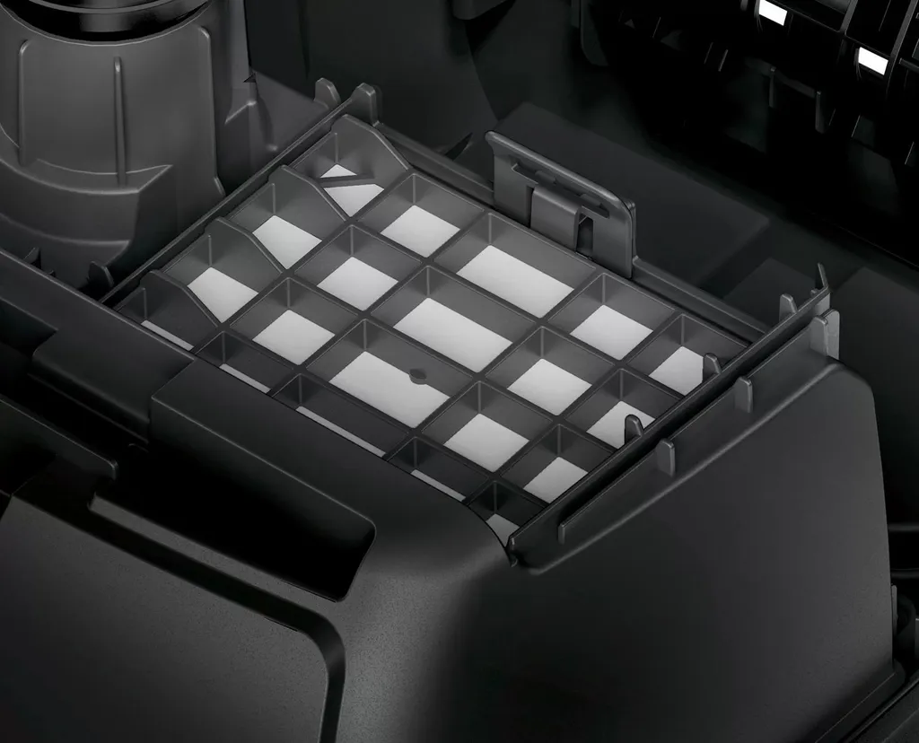 - Filtersystem: Hygienefilter für saubere Ausblasluft – erreicht Staubemissionsklasse B
