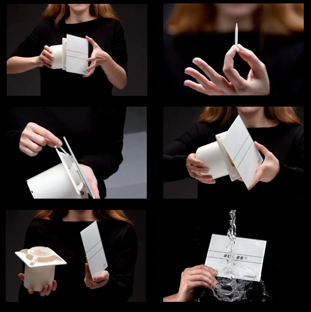 Die neue E GTH Reihe von Extraktoren hat mit dem Wunsch, einen neuen Standard im Markt setzen und kombiniert Effizienz und Eleganz Extraktionseinheiten mit hoher Energieeinsparung, Entzugsleistung, Haltbarkeit und Stille bieten erstellt. E GTH Hygro Einstellbare Feuchtigkeitssensor zwischen 40% und 90%. Einstellbare elektronische Schaltuhr zwischen 0 und 15 Minuten. 2 Geschwindigkeiten. Temperatur und relative Feuchte Indikator. Einfach zu entfernen und reinigen Mit einem einzigen Tool, mit dem Extraktor zugeführt wird, in nur wenigen Sekunden können Sie leicht entfernen Sie die Glasfront nur, indem Sie ein feuchtes Tuch über sie, um sie zu reinigen. Das gleiche Tool können Sie den Timer und die Feuchtigkeitsregler anpassen. E GTH ist mit einem 2-Gang-Motor ausgestattet: 1. Gang: einstellbar zwischen zwei Extraktionsstufen vor der Installation. 2. Gang: auf das Licht wird ein und auf die Aktivierung des Feuchtigkeitsregler oder den Timer aktiviert.