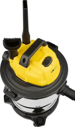 - Im Lieferumfang enthalten ist der Nass Trocken Staubsauger, ein Bürsten-/Fugenaufsatz, eine Nass-/Trockenbürste, das 3-teilige Saugrohr und ein auswaschbarer Permanentfilter für den Nass Trocken Sauger