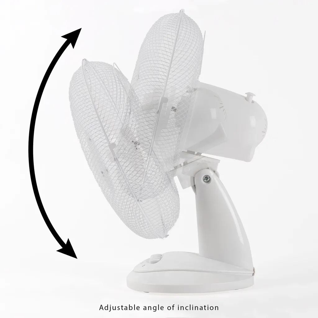 Oszillierender Ventilator mit einstellbarem Neigungswinkel.