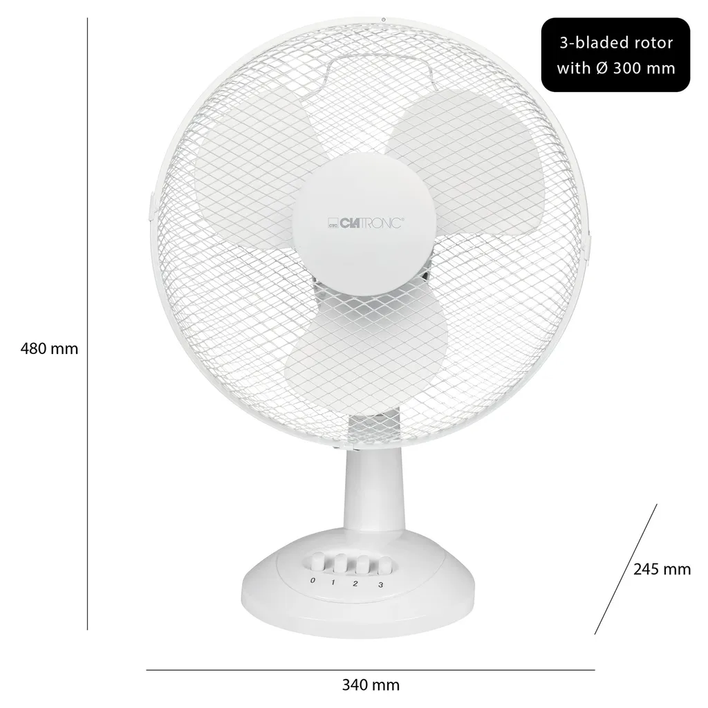 Mit 3 Laufgeschwindigkeiten und vielfältigen Einstellungen ermöglicht der Tisch-Ventilator VL 3602 von Clatronic ein Höchstmaß an Komfort bei Ihnen Zuhause oder im Büro. Zusätzlich punktet das Gerät mit einem sicheren Stand und dem hochwertigen Metallschutzgitter.