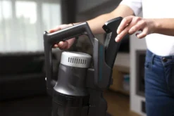Der Staubbehälter hat ein Volumen von 0,5 l und ist sehr schnell und hygienisch zu reinigen. Nach dem Befüllen drücken Sie einfach den Knopf, der den Behälter öffnet, und Staub und Schmutz können ausgekippt werden, ohne den Behälter selbst zu berühren. Dank des hochwertigen HEPA-13-Filters ist der Staubsauger auch für Allergiker geeignet.