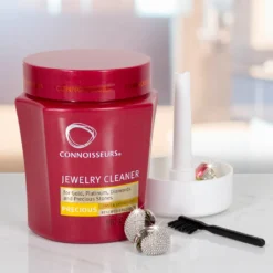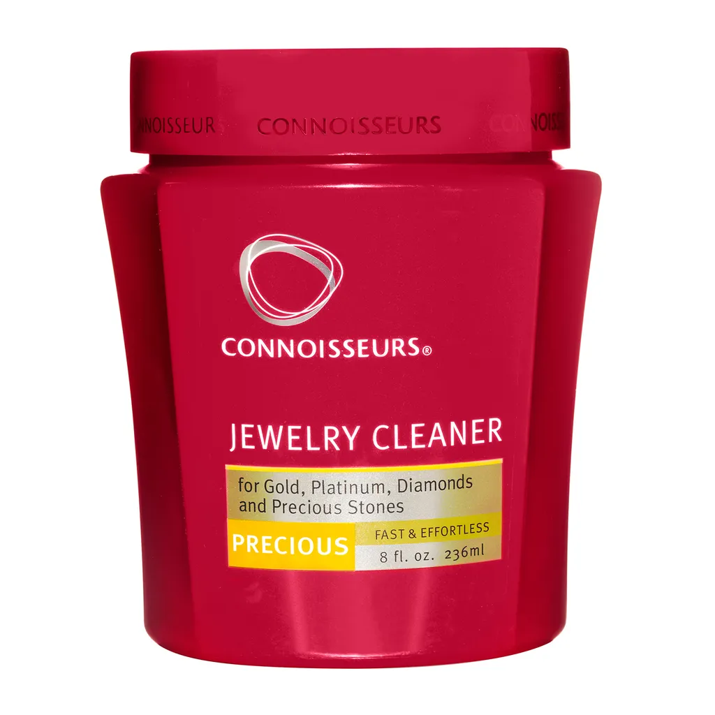 Regelmäßiges Reinigen von Schmuck mit Connoisseurs Precious Jewellery Cleaner wird den Glanz Ihres Gold-, Platin-, Diamant- und Edelsteinschmucks erheblich verbessern und „jung“ halten.