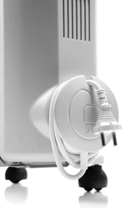 Patentierte Batterie: 35 % größere Oberfläche gegenüber traditionellen Modellen, für eine bessere Wärmeverteilung – Real Energy für eine gesteigerte Effektivität – Raumthermostat – Frostschutzfunktion – Tragegriffe – Vormontierte Laufrollen – Kabelaufwicklung – Anzahl Heizrippen: 9 – Für Räume bis: 60 m³ – Farbe: Weiß