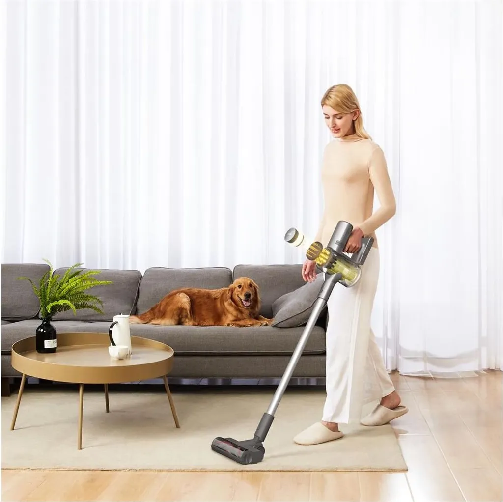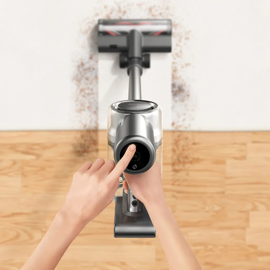 Der Dreame V11 SE ist ein leistungsstarker, beutelloser Stielstaubsauger. Der bürstenlose Motor mit 450 Watt sorgt in Verbindung mit einem selbstreinigenden 12-Kegel-Zyklon-System für eine konstante Saugkraft. Das Zyklon System sorgt zusammen mit dem 5-fach HEPA Filtersystem für eine saubere Abluft. Drei Reinigungsmodi bieten die passende Saugkraft für unterschiedliche Reinigungsaufgaben. Der farbige, scharfe LED HD-Touchscreen zeigt den Ladestand des Akkus, Wartungserinnerungen und den gewählten Reinigungsmodus.