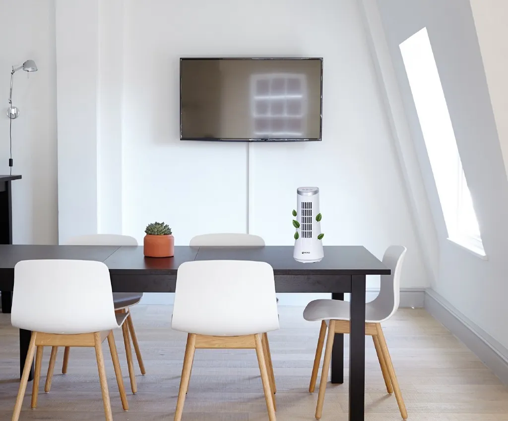 Dieser Turm Tischventilator sorgt an warmen Tagen immer für kühle Luft und Frische.