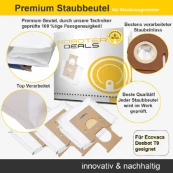 Die automatische Absaugstation leert den Staubbeutel selbstständig nach bis zu 30 Tagen Verwendung. Der Deebot T9+ ist auch zur Entfernung von Tierhaaren geeignet. Einsetzbar zur Reinigung von Teppich- oder Holzfußboden.