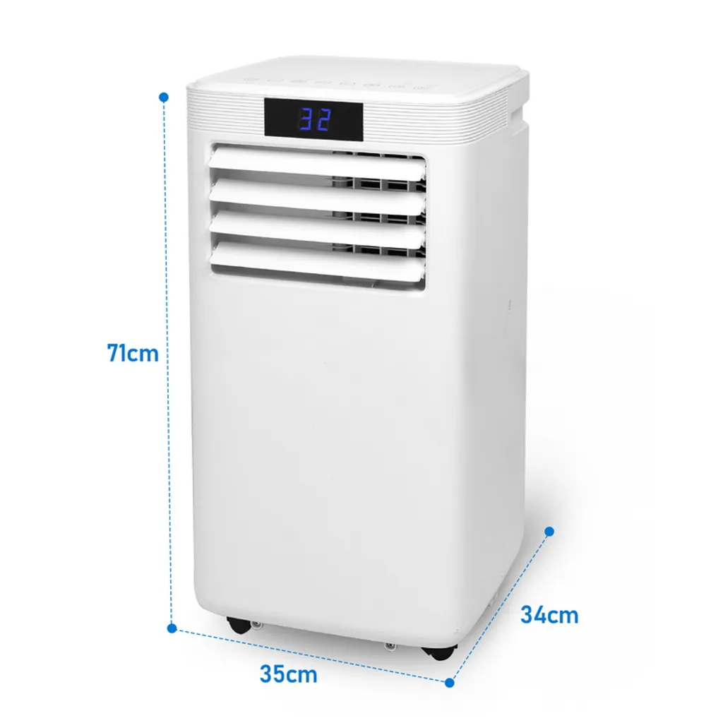 Intelligente temperaturregelung: Der einstellbare 24-Stunden-Timer kann die Raumtemperatur auf 16 bis 32 ° C (61 bis 90 ° F) abkühlen. Sie können ganz einfach Zeit, Temperaturgeschwindigkeit und Modus einstellen. Perfekt für zu Hause oder im Büro!Diese Mobile Klimaanlage misst 35x 34 x 71 cm und mit 4 eingebauten Rädern, sodass Sie das Gerät problemlos in jeden Raum mit Fenster bewegen können.