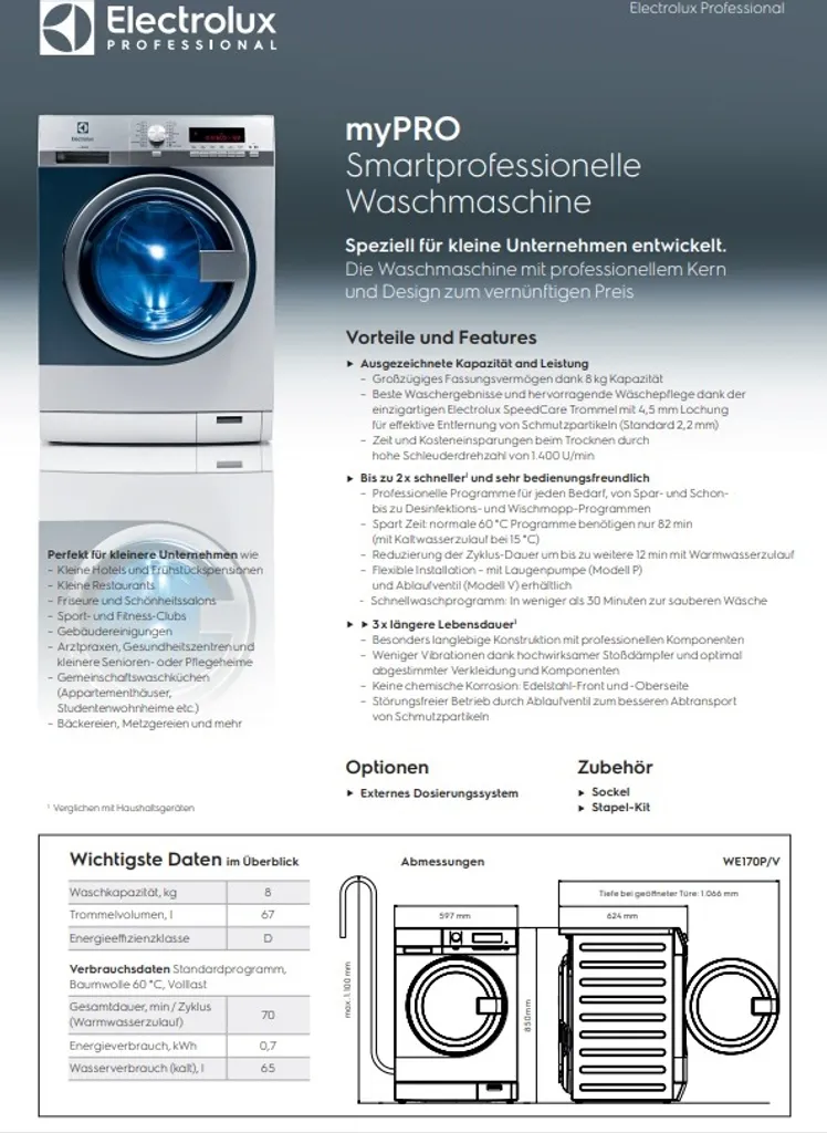 Electrolux myPRO WE170V – Waschmaschine – Breite: 59.7 cm – Tiefe: 62.4 cm – Höhe: 85 cm – Frontlader – 67 Liter – 8 kg – 1400 rpm