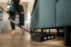 Ein schönes Detail ist der ergonomische Griff mit dem Schalter für den Dauerbetrieb. Drei praktische LED’s leuchten nicht nur die dunklen Ecken aus, und geben Ihnen einen perfekten Überblick über die gereinigte Fläche.