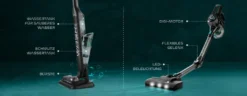 Wenn Sie immer noch glauben, dass ein leistungsstarker Stabstaubsauger schwer und robust sein muss, wird Sie der ETA Supersonic Wash H2O eines Besseren belehren. Das Metall-Saugrohr mit flexiblem Scharnier macht es einfach, auch unter niedrige Möbel zu gelangen, ohne den Rücken zu belasten. Dank seines geringen Gewichts von nur 2,5 kg können Sie problemlos Deckenleuchten und Sitzpolster absaugen.