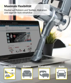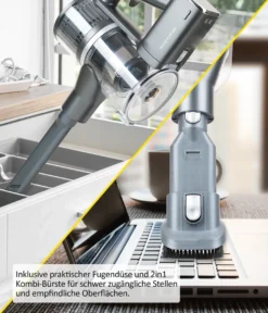 Zur besonderen Effizienz gehört besondere Reinheit. Hier setzt INVICTUS mit dem X8 höchste Standards. Er ist standardmäßig mit einem 3-Fach HEPA-Filter ausgestattet. HEPA-Filter fangen nicht nur Schmutz, Staub und Haare auf, sondern auch Schwebstoffe im Nanometer-Bereich. Solche Schwebstoffe sind Pollen, Milben, Viren sowie Bakterien. Die motorisierte Elektrobürste ist mit einem LED Spot-Licht ausgestattet. So werden Verschmutzungen überall sichtbar und schnell beseitigt. Die 6.500 Umdrehungen pro Minute der feinen Borsten des Bodenaufsatzes entfernen tiefenwirksam Verschmutzungen aller Art auf sämtlichen Oberflächen – auf Teppich- genauso wie auf Parkettböden. Für besonders empfindliche Gegenstände enthält dieses Set eine 2in1 Kombi-Bürste, deren sanfte Borsten sich selbst für die empfindlichsten Gegenstände wie Laptop-Tastaturen eignet. Schwer zu reinigende Bereiche sind mit dem INVICTUS X8 endlich kein Problem mehr! Tiefenreinheit überall – vom Büro bis in die Küche. Mit der Fugendüse erreichen Sie auch Zwischenräume in Schubladen oder an Heizungen problemlos. Ein beutelloser Staub-Behälter spart Ihnen die Anschaffung von teuren Staubsaugerbeuteln und schont die Umwelt. Mit einem einfachen Klick-System lässt sich der Staub-Behälter hygienisch entleeren, ohne dass Sie mit den Verschmutzungen in Berührung kommen.