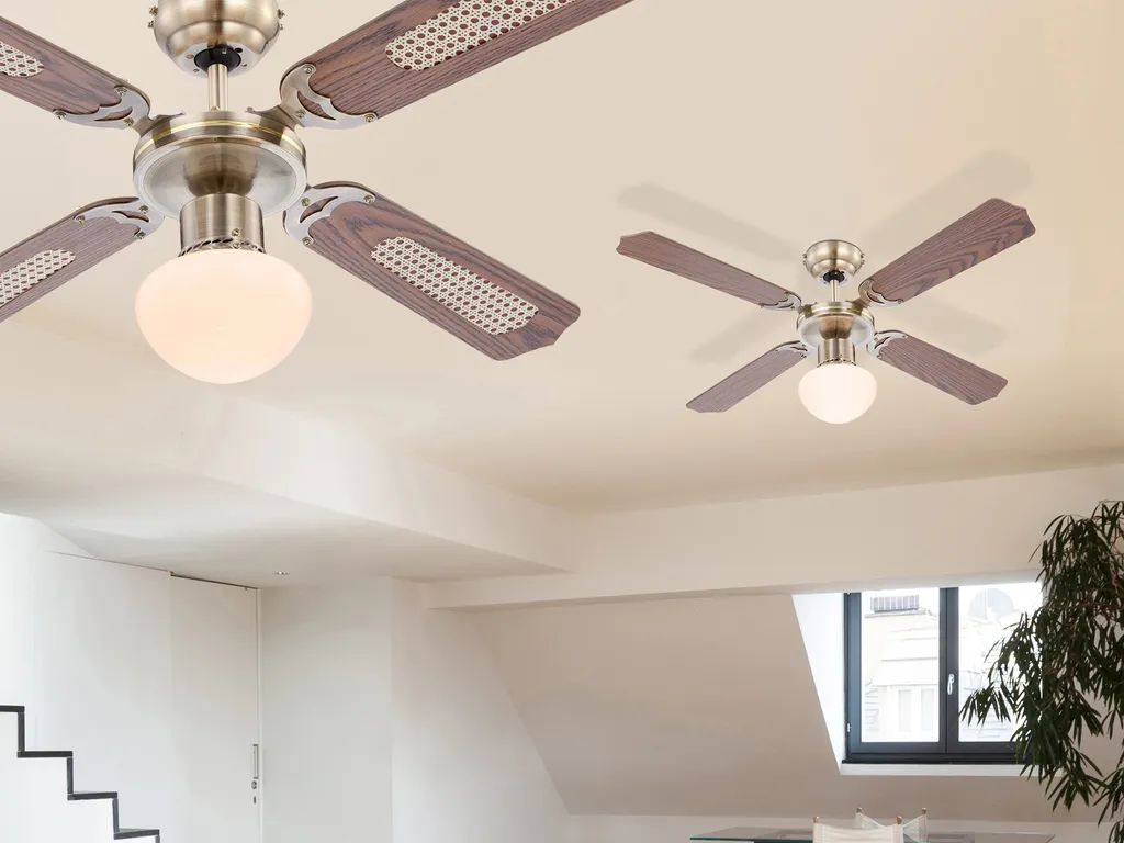 Globo Lighting VENTILATOR Metall Altmessing, Blade Turnable, Zugschalter Kette, Max. Motorleistung 50W, Optimale Raumnutzung 15m², Abkühlung, Aufheizen, Geschwindigkeitsstufen 115/185/235 RPM, ø: 1066mm, H: 415mm, Exkl. 1x E27 60W 230V