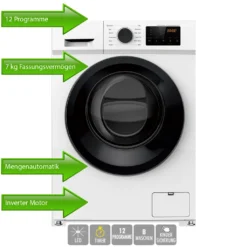 - Koch- / Buntwäsche / mit Vorwäsche / Kurz: Ja / Ja / Nein