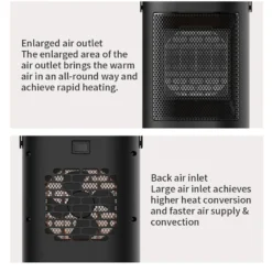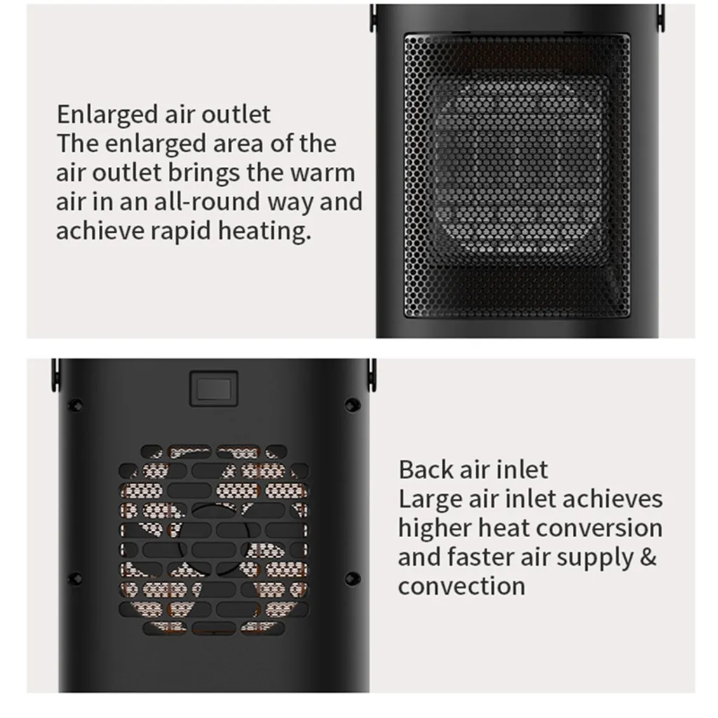 Energieeinsparung: Die elektrische Heizung hat 3 Temperatureinstellungen, nämlich 900 W natürliche Luft, 1200 W niedrige Heißluft, 1500 W hohe Heißluft; das Dezibel während des Betriebs beträgt 37-45 dB; der maximale stromverbrauch pro stunde beträgt 1,5 kWh, das spart energie für sie und strom.