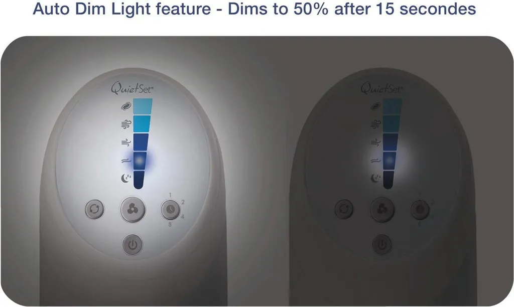 Bequem kann leise sein Schöner Turmventilator mit 5 Kühlstufen, Einstellung von Sleep bis zur vollen Wirkung. Beim QuietSet® können Sie zwischen 5 Geschwindigkeiten / Stufen wählen, inklusive Sleep für wirklich leisen Betrieb.