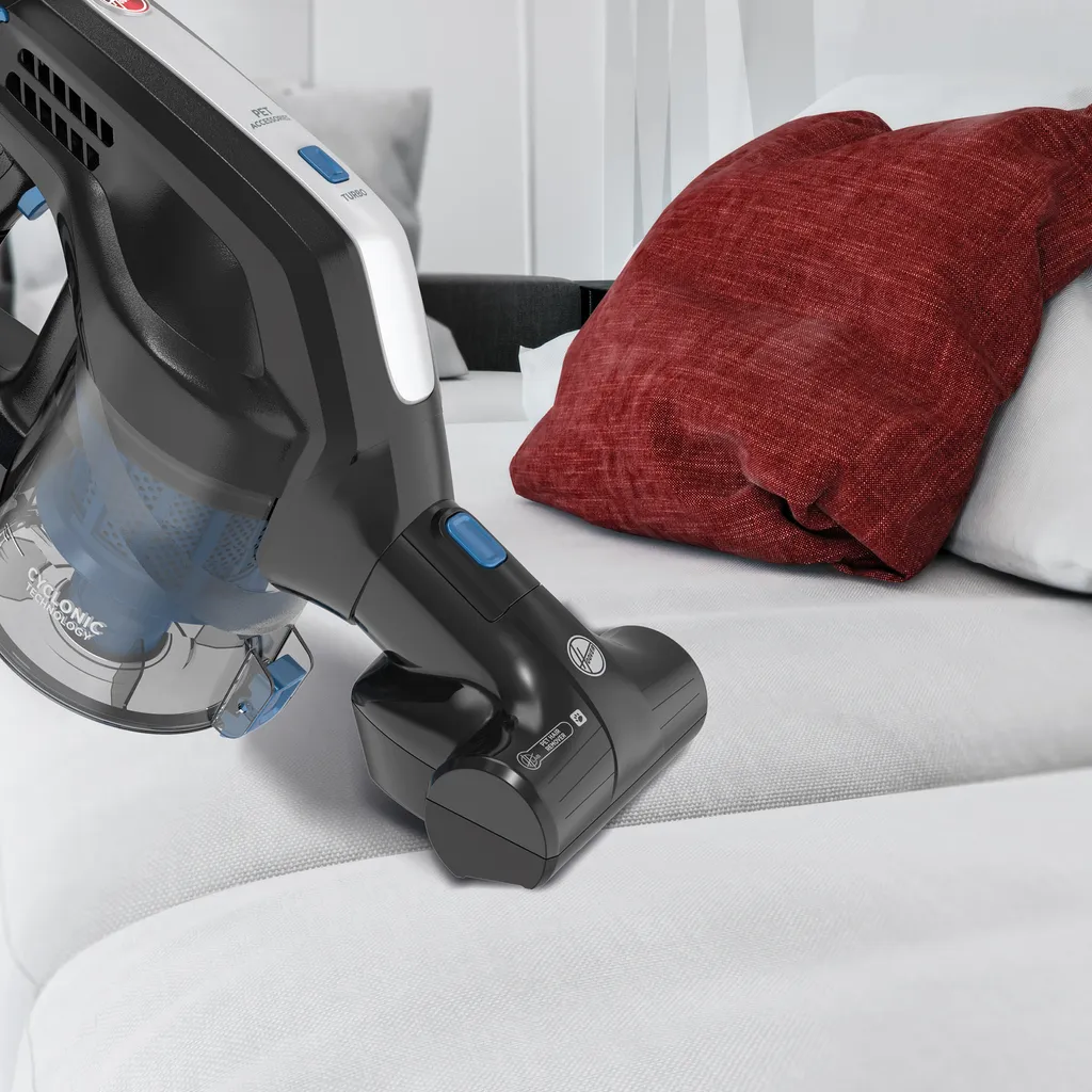 H-FREE 200 PET ist die ideale Wahl für Tierhalter. Die Pet Hair Remover-Bürste mit rotierenden Borsten entfernt Tierhaare und Fell tief von allen Textiloberflächen. Mit den 2in1-Werkzeugen können Sie enge Räume erreichen und über dem Boden reinigen.
