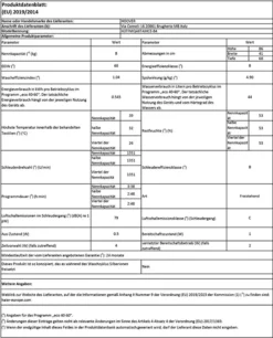 Luftschallemissionen in dB(A) re1 pW beim Schleudern im Standardprogramm Baumwolle 60°C bei vollständiger Befüllung, auf die nächstliegende Ganzzahl gerundet: 79