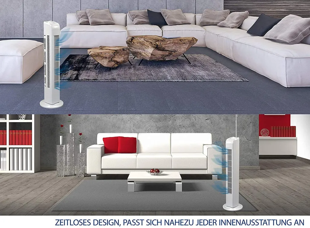 ELEGANT: Durch sein Design passt sich der Raumventilator unauffällig jedem Zimmer und Innen Ausstattung an, ob Schlafzimmer, Wohnzimmer, Küche, Wintergarten, Garage oder Büro