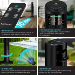 KESSER Turmventilator mit 3 verschiedene Geschwindigkeitsstufen, Zuschaltbare 90° Oszillation, Inklusive IR-Fernbedienung mit einer Reichweite von bis zu 10m, Timerfunktion