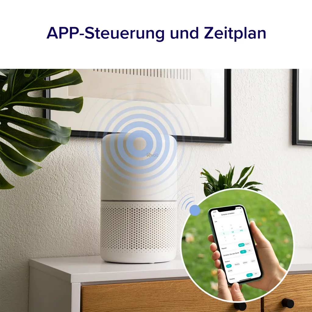 Levoit Smart Core 300SMit dem Luftreiniger Core 300S von LEVOIT erhalten Sie einen leistungsstarken Luftreiniger mit 3-stufiger Filtration und Smart Home Funktionen. Dank seines echtem HEPA-Filters mit Aktivkohle-Vorfilter fängt er Staub und Allergenpartikel wirksam auf, und absorbiert unangenehme Gerüche.Der hocheffiziente HEPA-Filter der Klasse H13 ist für die Aufnahme von Allergenen und Luftverschmutzungen bis zu 0,3 Mikron Größe wie lungenschädigender Staub, Schimmelsporen, Pflanzenpollen, Tierschuppen usw. zuständig.Leistungsstarke LuftreinigungDer Core 300S mit 360° Design und Vortexair-Technologie zeichnet sich durch eine Luftreinigungsrate von CADR 195 m³/h aus. Somit deckt er effektiv Räume von 41 m² in 30 Minuten ab. Ideal also für Wohnzimmer, Schlafzimmer, Küche, Büro usw. Besonders hervorragend geeignet ist er für Allergiker und Meschen, die unter Nasenverstopfung, Niesanfällen oder juckenden Augen leiden.Leiser BetriebDank seiner QuietKEAP-Technologie hat der Schlafmodus einen nahezu geräuschlosen Schallpegel von 22 dB und sorgt für ungestörten und angenehmen Schlaf. Er reinigt die Raumluft lautlos während Ihres Schlafes. Optimal für Schwangere, Babys, Kinder, Tierbesitzer, Raucher und Allergiker. Multi-Funktion Per Timer können Sie Betriebszeiten nach Wahl einstellen und einen individuellen Zeitplan erstellen. Nach Bedarf lässt sich der Durchsatz in 3 Gebläsestufen regeln. Zusätzlich lässt sich die Displaybeleuchtung abschalten sowie eine Displaysperre aktivieren.Smart Home FunktionenDer Core 300S ist mit WIFI ausgestattet und lässt sich bequem per VeSync-App über das Smartphone steuern. Um es noch komfortabler zu gestalten, lässt sich die VeSync-App mit Amazon Alexa und/oder Google Assistant verbinden, und im Anschluss per Sprachbefehl steuern.Effiziente 3 Stufen Filtration Das hocheffiziente Filtersystem besteht aus einem HEPA-Filter der Klasse H13, einem Aktivkohlefilter und einem feinen Vorfilter. Der Core 300S filtert effektiv bis zu 99,97 % der in der Luft befindlichen Schadstoffe wie Pollen, Staub, Tierhaare, Hautschuppen, Tabakrauch und Haushaltsgerüche.Eigenschaften: H13 HEPA & Aktivkohlefilter gegen 99,97% Luftstaub, geeignet für Allergiker und Raucher Leiser Schlafmodus mit Geräuschpegel von 22 dB Einstellbarer Timer Displaysperre Anzeigen für WIFI- und Filter-Status Smart-Funktionen über Amazon Alexa, Google Assistant und VeSync-App Lasersensor zur Überwachung der Raumluft und Regelung des Luftreinigers (Automatik Modus) 100 % ozonfrei Luftreinigungsrate (CADR): 195 m³/h Geeignet für Räume bis zu: 41 m² Geräuschpegel: 22-47 dB Filtersystem: Aktivkohlefilter, HEPA Filter & Vorfilter Gewicht: 3,7 Kg Maße: 22 x 22 x 36 cm (LxBxH) Nennleistung: 15W Stromzufuhr: AC 220-240 V, 50/60 Hz Farbe: WeißLieferumfang:1x LEVOIT Core 300S Luftreiniger 1x Dreistufiger True HEPA Original-Filter (vorinstalliert) 1x Bedienungsanleitung (DE/EN/FR/IT/ES) 1x Schnellstartanleitung