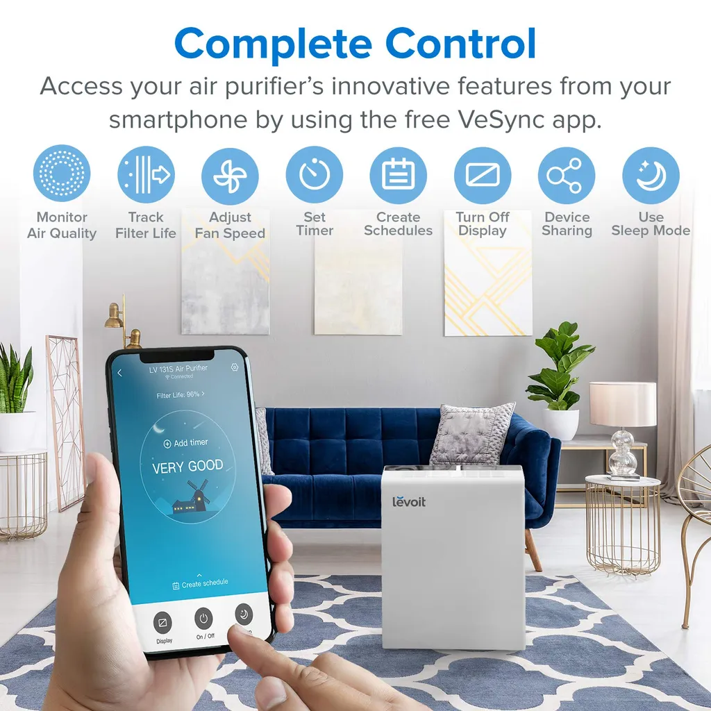 ‚【Fernsteuerung】Durch APP „VeSync“ können Sie aus der Ferner individuelle Zeitpläne und Timer erstellen, Auto- und Schlafmodus wechseln usw. Aktuell ist die Sprachsteuerung über Alexa auch möglich, auf Deutsch den Luftreiniger aus- oder einzuschalten. (Hinweise: Der Luftreiniger unterstützt nur 2, 4 GHz Netz bei der Verbindung) 【3 Stufen Filtration】Hocheffizienter HEPA-Filter filtert 99, 97% von feinen Staubpartikeln, Pollen, Blütenstaub, Milben und Luftverschmutzung von PM 2. 5. Aktivkohlefilter neutralisiert unerwünschte Kochen- und Rauchengerüche. Feiner Vorfilter hält Haare, Schuppen und Fusseln fest, um gesünder und saubere Raumluft zu bieten 【Leistungsstark & Ozonfrei 】Mit 230 m³CADR ist er geeignet für Räume bis zu 48m²wie Wohnung oder Raucherzimmer. Im Unterschied zum Luftreiniger mit Ionisator, der Ozon erzeugen kann, verwendet Levoit Luftreiniger keine UV oder Ionen, 100% Ozon frei und sicher für Ihre Gesundheit 【Multi-Funktion】Smarter Automodus durch Überwachung der Luftqualität herum stellt sich intelligent die Schaltstufe ein, um die Raumluft schneller zu reinigen. Leiser Betrieb (23dB) beim Schlafmodus sorgt für ungestörten und gesunden Schlaf 【Eingebaute Zeitschaltuhr】Timer Funktion ermöglicht Ihnen, den Luftreiniger auf 1-12 Stunden einzustellen.