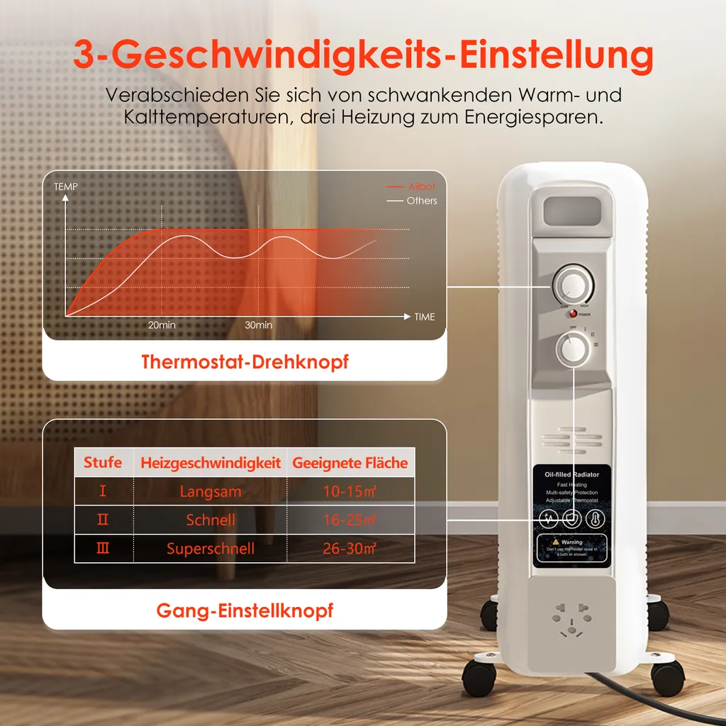 Da Ölradiator energiesparend mit Öl beheizt wird, erzeugt es keine Lichtquelle und ist gut gegen Gerüche abgedichtet. Dabei läuft Radiatoren heizkörper elektrisch sehr leise und sorgt seht gut für Ihren Schlaf. Öl Radiatoren mit Griff und Leise Rollen für einfachen Transport und Lagerung.