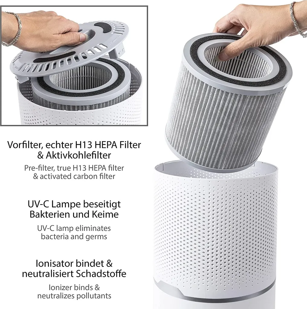 – Luftreinger mit Vor-Filter, H13 HEPA Filter und Aktivkohlefilter zum Schutz vor Pollen und Staub