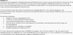 Patentiertes Luftreinigungsgerät, sorgt durch Aktivsauerstoff (Ozon) für saubere, frische und gesunde Luft. Eliminiert -Viren bis zu 99 % aus der Luft und bis zu 92 % von Oberflächen und senkt so die Ansteckungsgefahr in Innenräumen bedeutend. Der integrierte Ventilator saugt belastete Luft an – die Luft passiert speziell entwickelten Photozonstrahler – Verbindung des Aktivsauerstoffs mit Geruchsmolekülen – Eliminierung von Gerüchen, Keimen, Viren, Bakterien und Aerosolfetten (sehr interessant in der Küche (sogar statt Dunstabsaughaube) – gereinigte Luft wird in den Raum zurückgeführt. UV-C Beschichtung: 10 %, Ozonkonzentration 0,048 PPM, Abmessungen: L 40 cm, Ø 13 cm, Gewicht 2,7 kg, UVC-Leuchte 8 Watt, Aufnahmeleistung 14 W, Haltbarkeit UV-C Leuchte 8.000 Betriebsstunden, Luftdurchsatz ca. Der OZONOS AC-I kann rund um die Uhr im Einsatz sein.