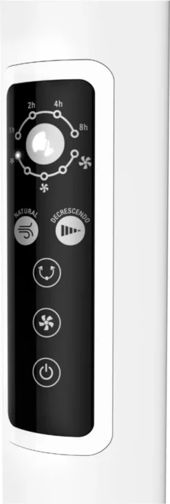 - 2 Betriebsmodi: Natural Breeze: Geschwindigkeit variiert zwischen den Stufen 1 bis 3 um eine natürliche Brise zu imitieren, Decrescendo (absteigend): schaltet automatisch alle 15 Minuten eine Stufe herunter vom Turbo Boost bis zum Nachtmodus