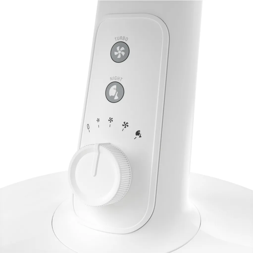 Der leistungsstarke Tischventilator Turbo Silence Extreme liefert ein angenehmes Gefühl von frischer Luft und ist dabei superleise, mit nur 38 dB(A) im Nachtmodus für mehr Wohlbefinden. Er verfügt über 4 Geschwindigkeitsstufen einschließlich der Turbo-Boost-Funktion, die bis zu 45 m³/Min. Luftzirkulation liefert, und dem Nachtmodus für einen erholsamen, ungestörten Schlaf. Darüber hinaus bietet das Gerät automatische Oszillation, verstellbare Ausrichtung und einen integrierten Griff für bequemen Transport. Turbo Silence Extreme ist der perfekte Ventilator auf dem Tisch für einen gemütlichen Wohnraum, liefert ein außergewöhnliches Maß an Erfrischung und ist dabei superleise.