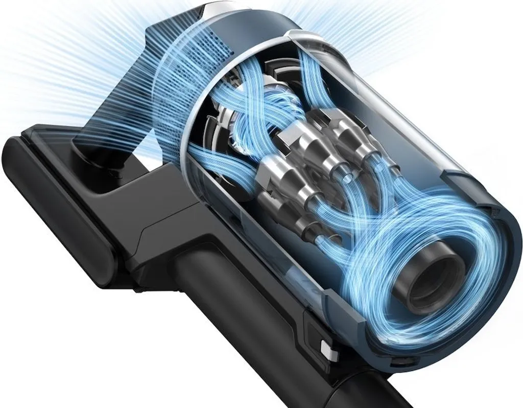 Die Dyson Cyclone Technologie basiert auf der Technik des Fliehkraftabscheiders. Hierbei wird die Luft durch einen Ventilator in den Staubsauger gesogen und durch den Einfallswinkel in eine Drehbewegung versetzt. Durch diesen Wirbel, wird Schmutz an die Seiten der Zyklone, durch immer feiner werdende Öffnungen gedrückt und landet im Staubbehälter. Der Vorteil dieser Technik liegt darin, dass keine Filter benötigt werden, da bei diesem Trennungsverfahren der Luft 99,99% der Staubteilchen und Bakterien entzogen werden, wodurch man keine Folgekosten hat.