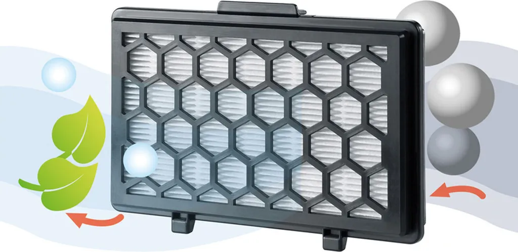 HEPA 13 Filter: die eingesaugte Luft wird zu fast 100% von Staub, Pollen, Milbenallergenen, Schimmel, Sporen und Gerüchen befreit