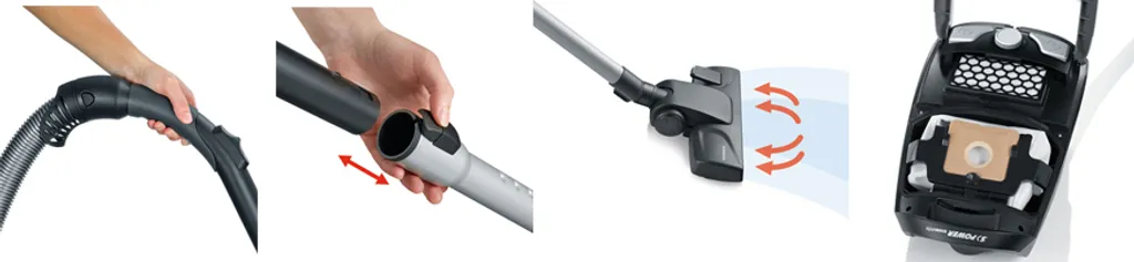 Ausgestattet mit dem Power Airflow System bietet das 3,9kg leichte Kraftpaket hohe Saugkraft und trotz kompakter Bauform ganze 3,0 L Staubvolumen. Besonders wendig, leicht zu tragen und platzsparend zu verstauen und gleichzeitig ausgestattet mit dem Komfort eines Großen: 1,80 m Premiumschlauch, Ergo-Soft-Griff mit Klickverbindung und Knickschutz, 90 cm easytouch Teleskoprohr, Wessel-Universal-Bodendüse, XL-Hartbodendüse, Zubehörbeutel mit 3-teiligem Zubehörset (Fugen-, Möbel- und Polsterdüse), ausgezeichnete Hepa 13 Filtration, gummierte Flüsterräder, stufenlose Saugkraftregulierung und 9 m großer Aktionsradius. Geeignet für alle Bodenbeläge und Polster und nur 72 dB leise. Unsere Motoren und Bedienelemente werden normierten Dauertests, die eine Nutzungsdauer von mindestens 10 Jahren simulieren, unterzogen. Materialien müssen Bruchtests überstehen, Oberflächen müssen lichtecht und abriebfest sein. Wir überwachen die Produktion, inspizieren am Produktionsstandort und kontrollieren erneut, bevor wir die Ware im Auslieferungslager vereinnahmen. Damit das fertige Produkt unbeschädigt ankommt, benutzen wir im Falltest geprüfte Verpackungen, die im Sinne der Umwelt weitestgehend auf Kunststoff-Einlagen verzichten. Kundenzufriedenheit steht für uns an erster Stelle. Die EU führt ab 1. September 2014 ein Energielabel für Staubsauger ein. Es macht wichtige Leistungsmerkmale der Geräte transparent und bietet so eine hilfreiche Orientierung beim Staubsaugerkauf. Die mit einem Blick vom Energielabel ablesbaren Werte für , Reinigungsklasse auf Teppichen und Hartböden, Lautstärke und Staubemissionsklasse, erleichtern die Wahl des am besten geeigneten Gerätes. Bei der Konstruktion unserer Geräte arbeiten wir im Wesentlichen in zwei Schritten: An erster Stelle steht die Gebrauchstauglichkeit. Deshalb achten wir sehr darauf, dass wir dem Anspruch an guter Staubaufnahme, sauberer Ausblasluft und geringer Geräuschentwicklung gerecht werden. Im zweiten Schritt optimieren wir den Energieverbrauch ohne dabei Kompromisse in der Funktion einzugehen. Kabel sind immer auch Stolperfallen. Deshalb haben wir uns für die rote Signalfarbe entschieden. Auch die Bedienelemente heben wir farblich hervor, um damit eine intuitive Handhabung zu ermöglichen. Mit HEPA Filtermedien wird die ausgeblasene Luft zu 99,95% (H13) gereinigt. Die eingesaugte Luft wird zu fast 100% von Staub, Pollen, Milbenallergenen, Schimmel, Sporen und Gerüchen befreit. Durch seine ergonomische Form und Gummierung liegt unser Ergo-Soft-Griff optimal in der Hand. Seine Länge sorgt in der Kombination mit einem Teleskoprohr dafür, dass auch große Menschen aufrecht und ungebeugt Staub saugen können. Das integrierte Nebenluftventil kann die Saugkraft bei Bedarf schnell und einfach drosseln. Der Schlauchansatz wird durch einen hochwertigen Knickschutz geschont. Das Easytouch-Teleskoprohr verfügt über eine Manschette, mit der die Länge stufenlos und besonders leichtgängig justiert wird. Es besteht aus beschichtetem Stahl und ist praktisch unverwüstlich. Handgriff und Rohr lassen sich benutzerfreundlich per Klick-Verbindung fest und sicher verriegeln. Inklusive einer 28 cm breiten XL-Hartbodenbürste. Damit lassen sich alle Arten von Hartböden besonders schonend und gründlich reinigen. Insbesondere beim Saugen entlang von Kanten und Fugen bietet die Düse Vorteile gegenüber umschaltbaren Universaldüsen. Sie ist aufgrund ihrer schmalen Bauform ideal für schwer zugängliche Stellen. Hierbei kommen perfekt austarierte Motoren, moderne Dämpfungsmaterialien und Abdichtungsverfahren zum Einsatz. Schon heute unterschreiten die meisten unserer Staubsauger das ab 2017 gesetzlich geforderte Limit von max. 80 dB deutlich. Das Power Airflow System setzen wir bei Beutel-Staubsaugern ein. Eine optimale Kombination aus Hochleistungsmotoren und Gebläsen, effizienter Luftführung sowie Filtermedien mit hohem Luftdurchsatz bei gleichzeitig hervorragenden Reinigungseigenschaften sorgen für eine lang anhaltend hohe Saugkraft.