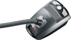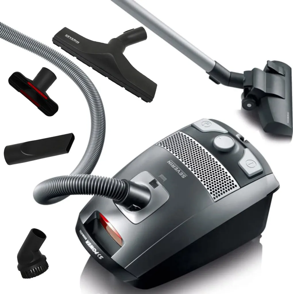 Severin BC 7045. Maximale Eingangsleistung: 750 W. Typ: Zylinder-Vakuum, Reinigungsart: Trocken, Staubbehälter Typ: Staubbeutel, Staubkapazität: 3 l. Vakuum-Luftfilterung: HEPA, Geräuschpegel: 72 dB. Produktfarbe: Schwarz, Grau