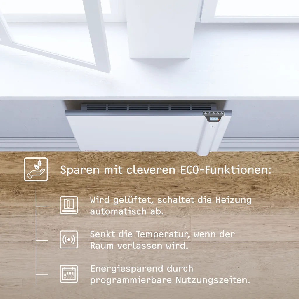 Die zwei integrierten Heizsysteme für Wärmestrahlung und Konvektion sorgen für angenehme und behagliche Raumtemperatur.
