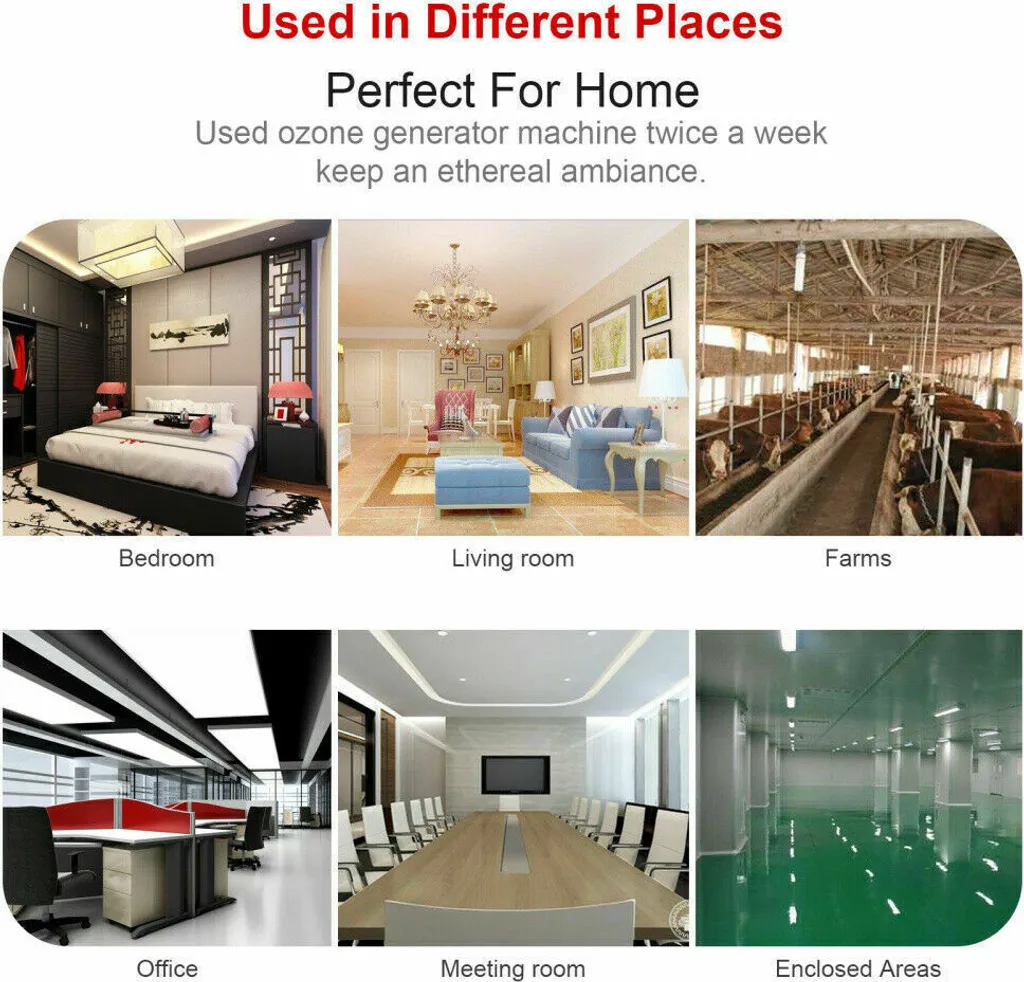 Weit Verbreitet—Der Ozongerät ist ideal für LUFTBEHANDLUNG UND GERUCHSENTFERNUNG im Ihr Zuhause und Raucherbereiche und Haustierbereiche, muffigen Keller, Auto, Restaurant, Wasser und Feuer beschädigte Bereiche, usw.