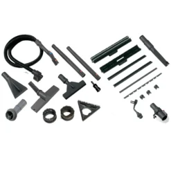 Dampfsauger Vapor 9000 A, Schlauch, Handgriff mit 2 Steuerungsmöglichkeiten, 2 Verlängerungsrohre, Polsterdüse, Mehrzweckbürste, Einsatz für Böden (Mehrzweckdüse), Einsatz für Teppiche (Mehrzweckdüse), Einsatz mit Gummileiste (Mehrzweckbürste), Fensterwischer, Zerstäuber, Fugendüse, Punktstrahldüse, 3 halbrunde Bürstchen für Fugendüse, 1 kleines Bürstchen für Punktstrahldüse, Verbindungsstück, Bürste mit rundem weichen dreieckigem Einsatz, Schalldämpfer, Satz O-Ringe