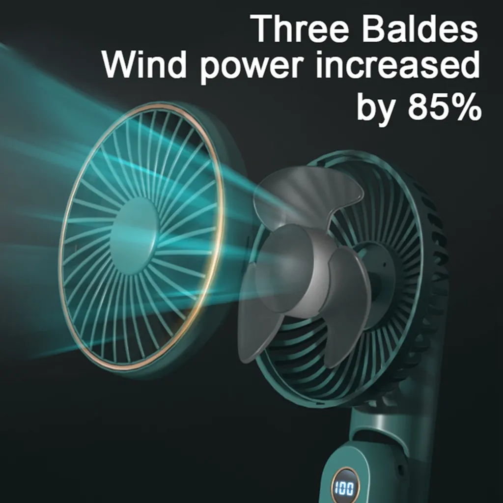 5 Windgeschwindigkeits- und Leistungsanzeige: Dieser Handventilator schaltet mit einem Knopf zwischen 5 Windgeschwindigkeitsmodi um und verfügt über eine LED-Anzeige, die Windgeschwindigkeit und Leistung jederzeit anzeigt. Stufe 1 Brise Wind, Stufe 2 sanfter Wind, Stufe 3 mittlerer Wind, Stufe 4 starker Wind, Stufe 5 natürlicher Wind. (Der zirkulierende Wind schaltet automatisch zwischen den oben genannten 4 Windgeschwindigkeiten um, erleben Sie den Spaß der intelligenten variablen Geschwindigkeit)