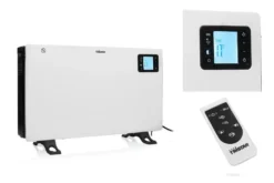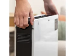 Der Konvektor hat integrierte Griffe, so dass er sicher und einfach bewegt werden kann. Mit der Leistung von 2000 Watt wird der Raum im Handumdrehen erwärmt. Die Elektroheizung hat 3 verschiedene Einstellungen von 750, 1250 und 2000 Watt. Es gibt verschiedene Funktionen, wie eine Turbofunktion, einen Frostschutzmodus und eine 24h Timerfunktion. Steuern Sie manuell, per Fernbedienung oder mit der App und überprüfen Sie die Einstellungen ganz einfach auf dem LCD-Display des Geräts oder direkt auf einem Smartphone.
