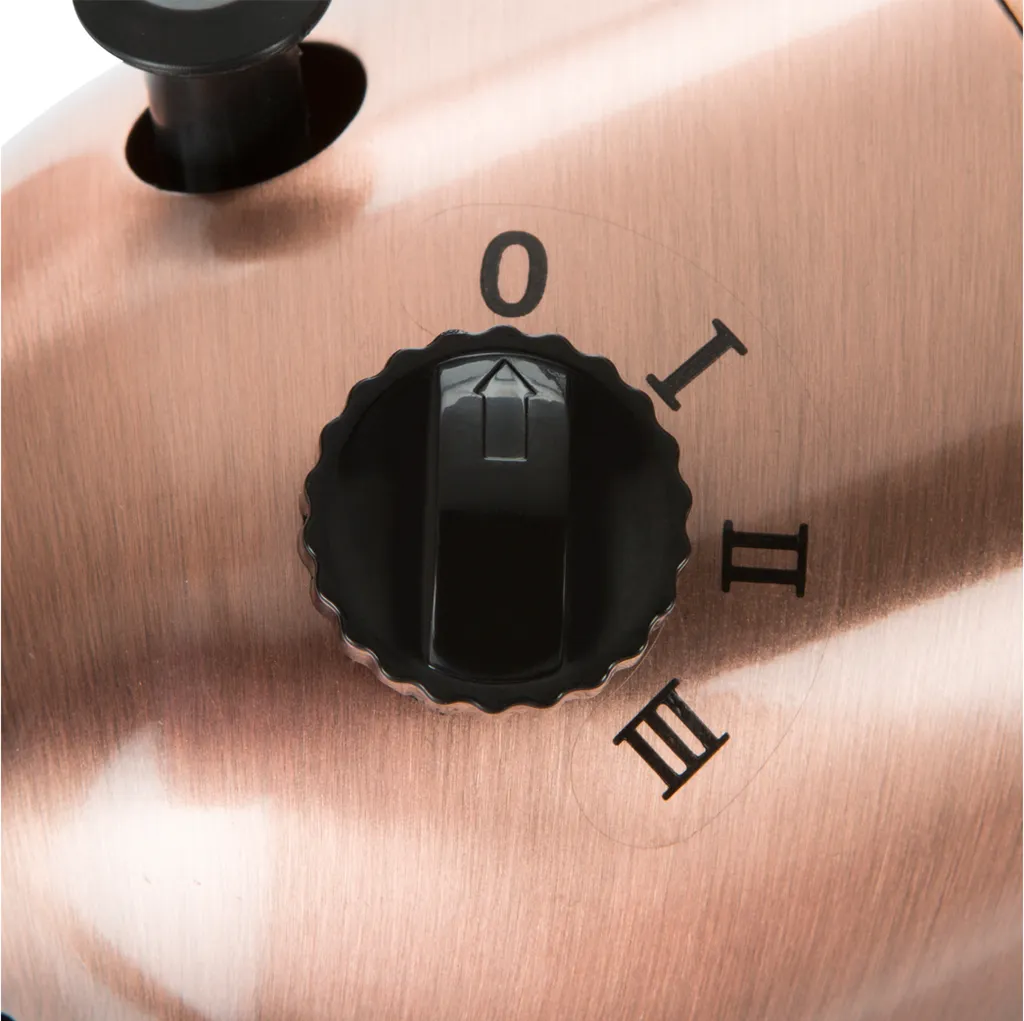 Holen Sie sich den angesagtesten Ventilator dieses Sommers, den Tristar VE5971 Retro Metall-Standventilator ! Ein oszillierender Ventilator im Kupferton mit verstellbarer Höhe (von ca. 85 bis 128 cm). Eigenschaften: 3 Geschwindigkeitsstufen Oszillation: 85º Durchmesser: ca. 40 cm Luftstrom: 3560 m³/h Lautstärkepegel: 64,3 dB Geschwindigkeit: 950-1100-1250 r.p.m. Verstellbare Neigung: 20° Spannung: 220-240 V Frequenz: 50 Hz Leistung: 50 W Maße des Fußes: ca. 39 cm Stromkabel: ca. 170 cm Überhitzungsschutz