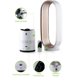 [Energie sparen]Die Stromaufnahme eines Ventilators ohne Flügel ist nur halb so groß wie die eines herkömmlichen Ventilators. Längeres Leben. 100 % natürliche Luft, damit Sie sich durch den konstanten Luftstrom wohl und kühl fühlen.